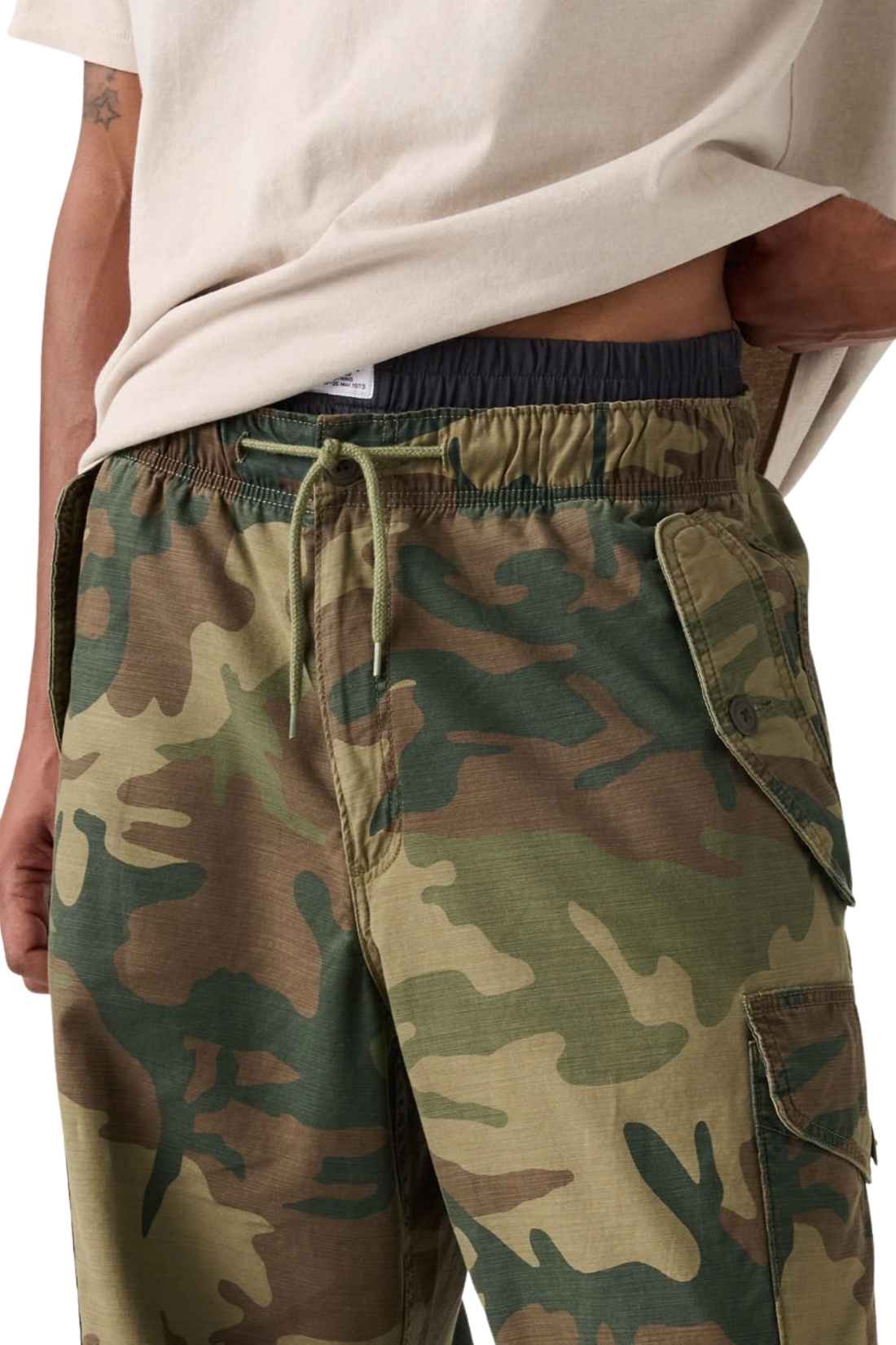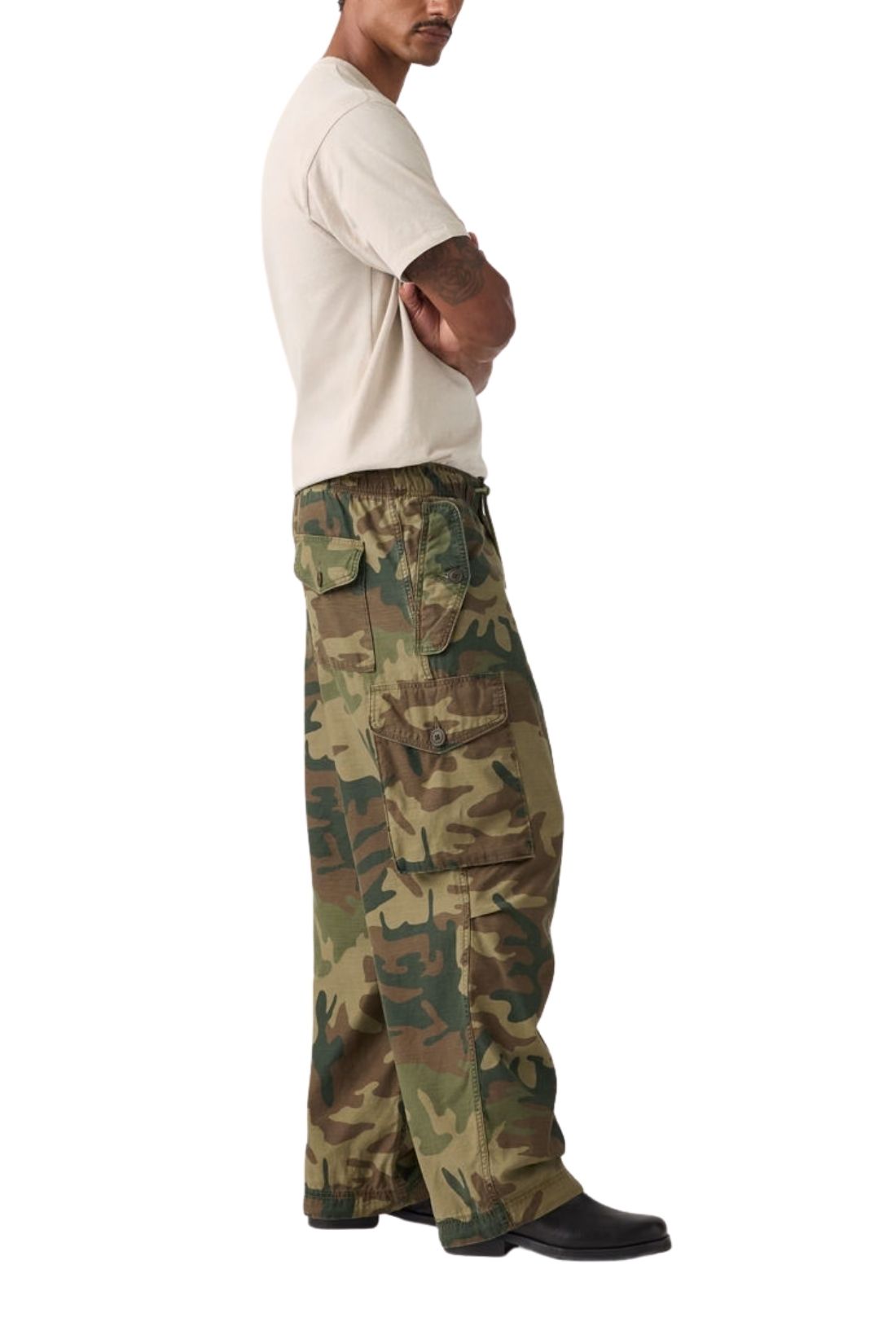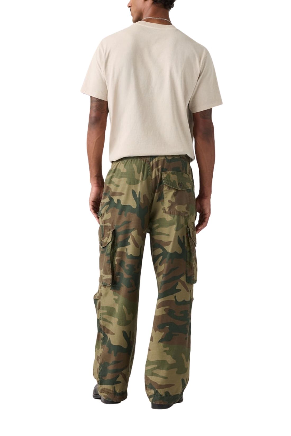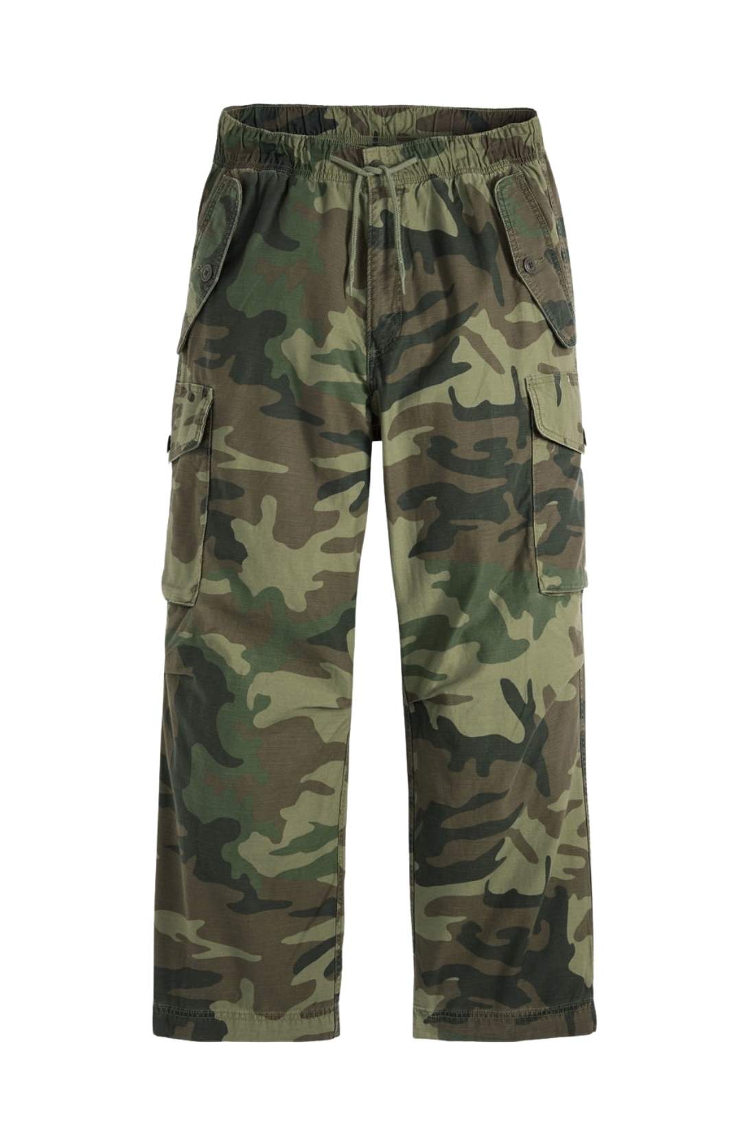 Men’s relaxed cargo pants in pure cotton slub twill with camo print, elastic waist and Levi’s Red Tab label on the back.